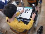 毛筆の学習で,「岩山」を書きました。上下のバランスや,右上がり,とめ,はらいな...