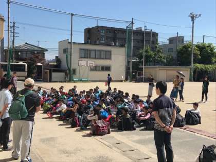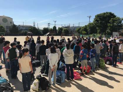 快晴の中,見送りの保護者の方々や教職員に見送られ,