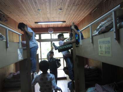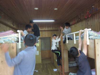 ベッドに乗ったり,となりの部屋をのぞきに行ったり。