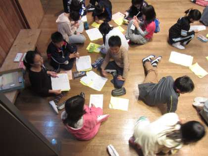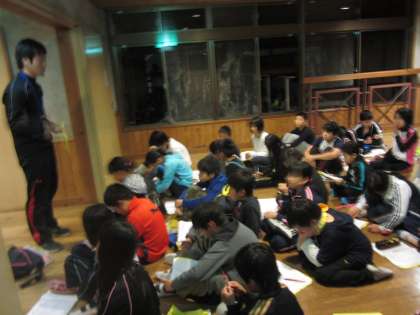 今日は雨のためプログラムの変更があった中、できることを精一杯がんばった一日でした。振り返りのミーティングではこれからがんばりたい事を係で集まって話し合いました。話し合ったことをみんなに伝えて、昨日より今日、今日よりも明日、さらに協力できるように高め合っていきます。