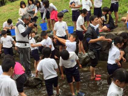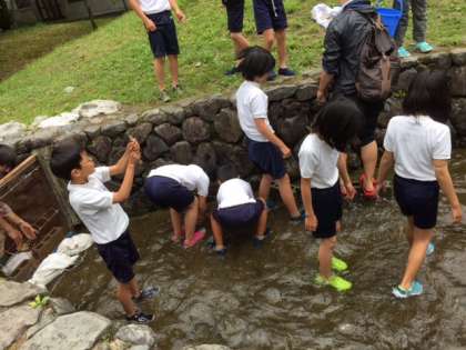 徐々にイワナを捕まえる児童が増えてきました。