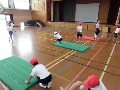 レースでは,前転の後,走り始める予定なので,前転をして走る練習をしました。
