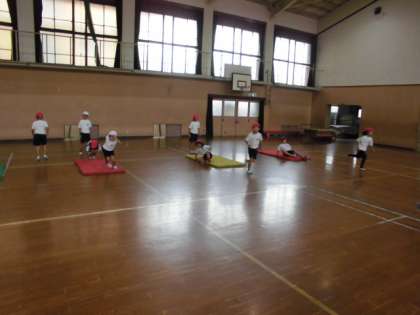 運動会のバラエティ走に向けて,前転の練習をしました。