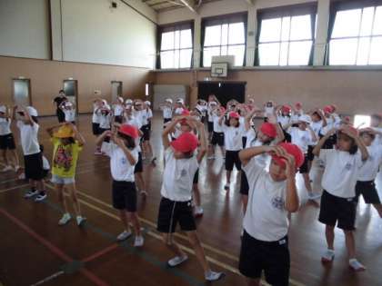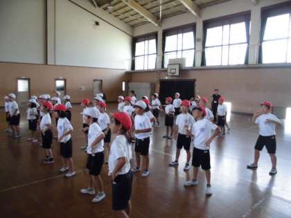教室での練習のおかげか,ほとんど動きを覚えている子どもたち。