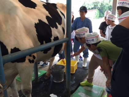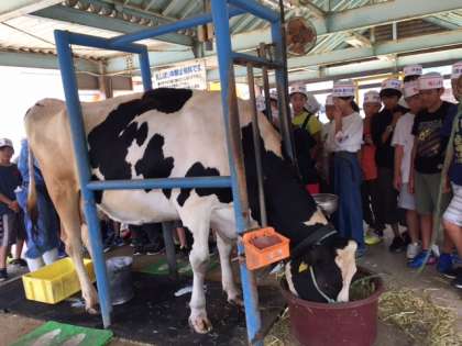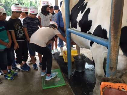 6年 修学旅行 2日目 淡路島牧場 乳搾り体験