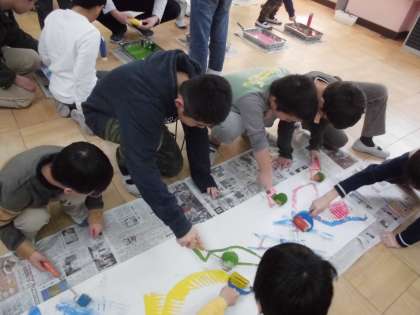 唐橋小学校で合同制作をしたよ。