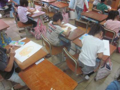 みんな一緒に同じところを描いていきました。
