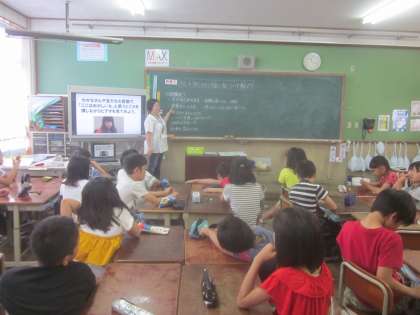 今日はゲストティーチャーを迎えて,スマートフォンの使い方について学習しました。持っている児童も少なくないスマートフォン。
