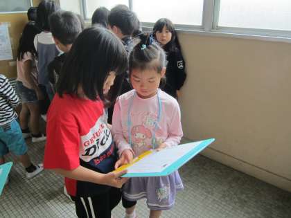 今日の3,4時間目にワンツーグループで学校探検を行いました。