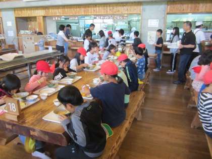 入所した後は食堂で昼食をとりました。好きなものを選んで食べることができるので、子どもたちはとても喜んでいました。