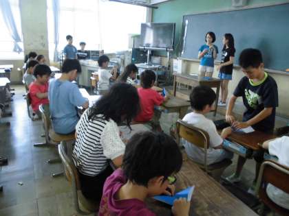 6年生が鶴の折り方を教えてくれました。