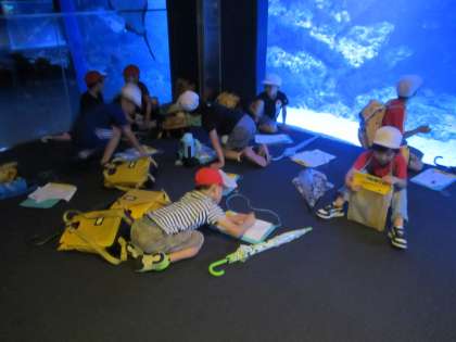 答えを探しながら楽しく水族館を班ごとにめぐりました。