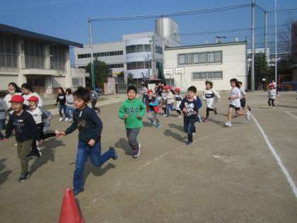天気のいい日も寒い日も,5分間みんなで走ってきました。