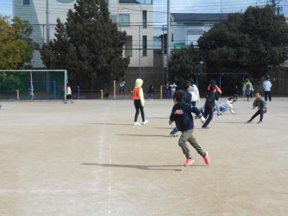 赤白10〜14班が運動場で遊びました。