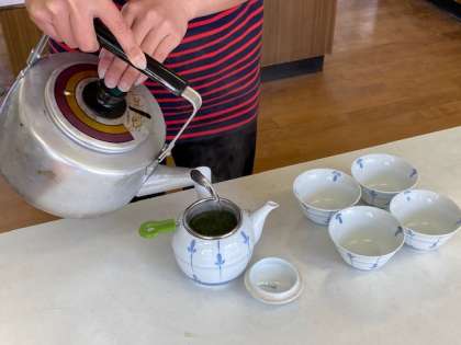 少しだけ冷ました湯を,茶葉を入れたきゅうすに注ぎます!