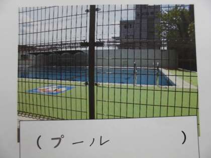 プール→たいいくのときにおよいだり水あそびをしたりするへやです。