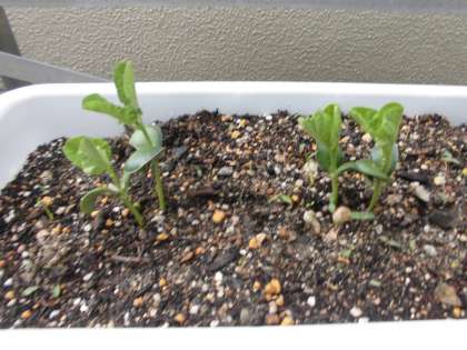 種まきをして,2週間たちました。芽が出て,少しずつ