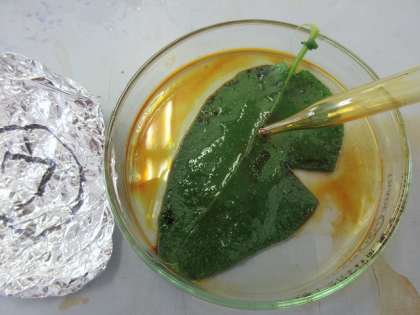 この実験は,植物の葉に日光が当たると,
