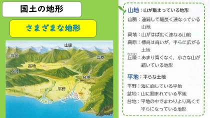 今日の社会は,さまざまな地形の特色について考えましょう!