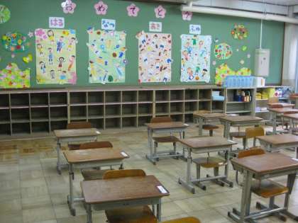 まんなかのしゃしんは 1ねんせいのきょうしつです。