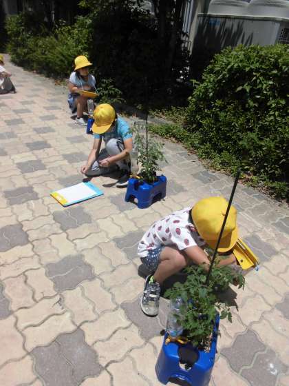 成長しているミニトマトを見て,喜んでいました。