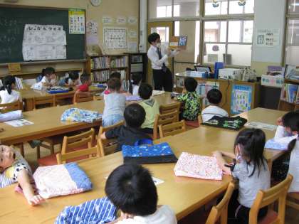 司書の先生に,図書室の使い方や,読聞かせを