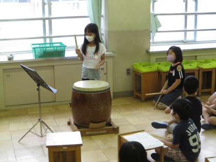 音楽の学習で,太鼓をたたきました。
