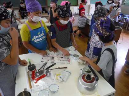ガスコンロの火のつけ方,お茶の入れ方など初めて体験する子どもも多く,安全に気を付けながら楽しくに取り組んでいました。