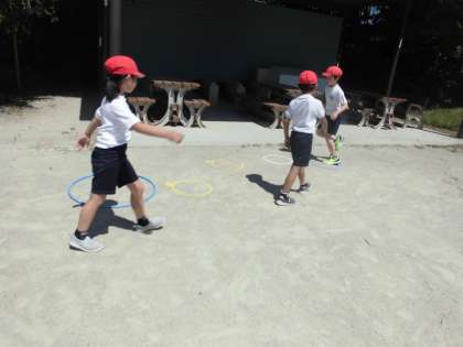 片足で跳んだり両足で跳んだりと楽しんでいました。