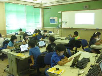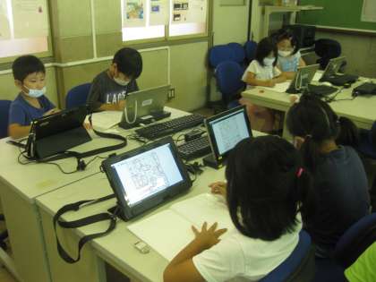 タブレットを使って,ことばを探して〇で囲む作業をしました。