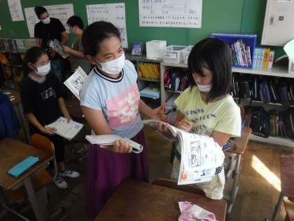 好きな教科をたずねあうことをめあてに置き,各教科の言い方などをモンタナ先生に教えていただきました。
