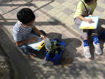 子どもたちは,土づくりから苗の植え替えまで,