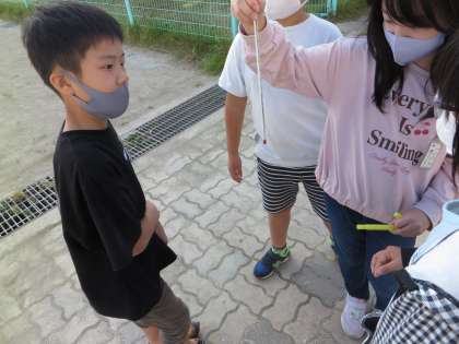 理科の学習で,日なたと日かげの温度を確認しました。