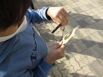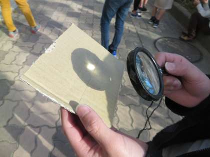 理科の学習で,虫メガネを使って日光を