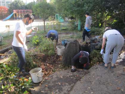 14日(土)にPTA,おやじの会,教職員で祥栄の森の池を整備しました。お忙しい中,たくさんの方々にご協力いただきました。本当にありがとうございました。