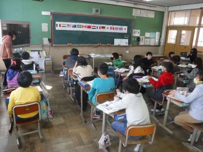 外国語の学習では,自分の行きたい国の紹介をしています。
