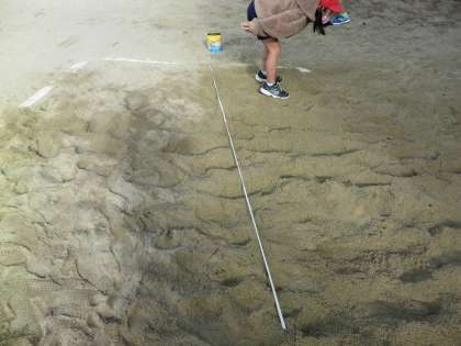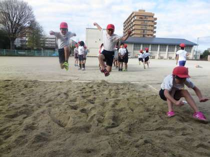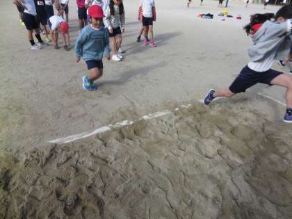 助走をつけてできるだけ遠く跳べるよう練習しています。