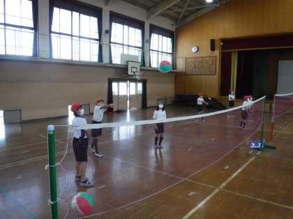 みんなでトスがつながるように友達と協力して取り組んでいました。