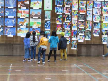 低学年の作品を見て,これまでの自分たちを振り返ったり,