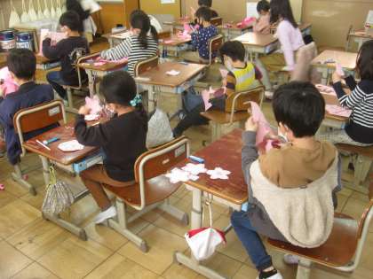 新一年生へむけての教室飾りを作っています。