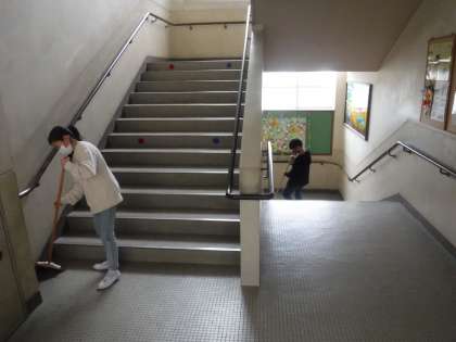 それぞれの担当場所で,細かいところまでしっかりと掃除しています。