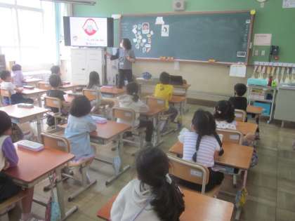 食べ物の食べ方や給食のおいしい食べ方を教えてもらいました。