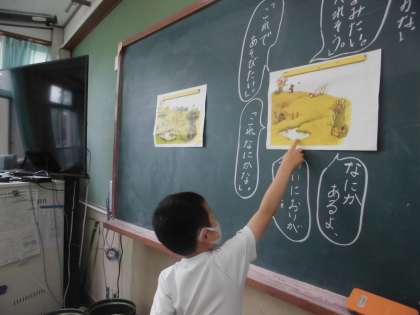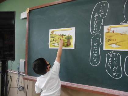 前に出てきて,発表して見つけたところをみんなに発表していました。