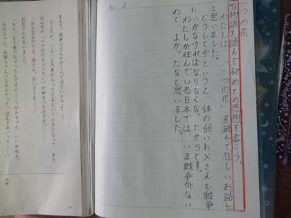 国語の学習で,新しく『一つの花』という物語を読み進めました。