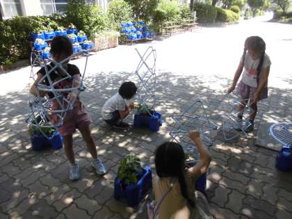 子ども達の頑張りに答えて,あさがおがぐんぐん成長しています。
