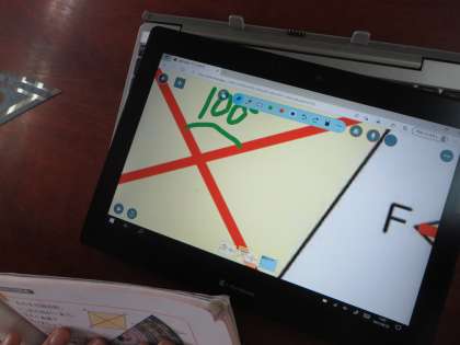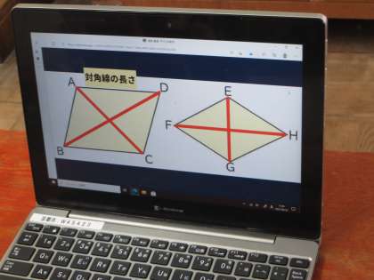 算数の学習で,ひし形や平行四辺形に対角線を引き,