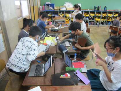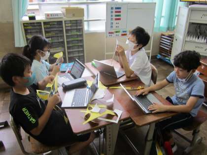 今,総合的な学習の時間に働くことについて学習しています。みんなで「ケーキを作る仕事」の体験をしました。