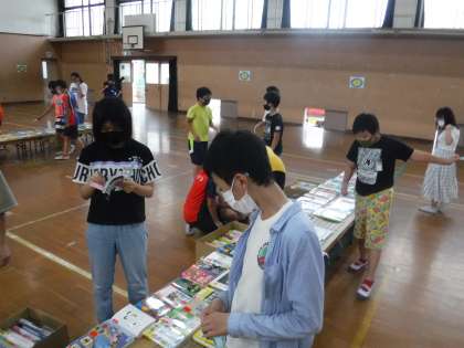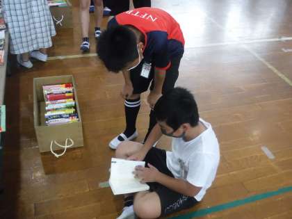 暑い体育館の中で行われましたが,子どもたちは座り込みもくもくと読書している人もいました。