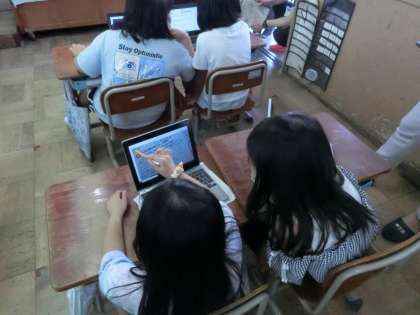 GIGA端末に○をつけたり文字を書き込んだりして