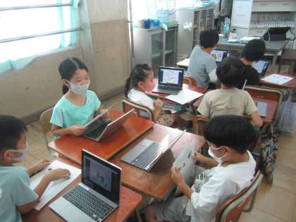 GIGA端末を使って自分の作ったオリジナルサラダを